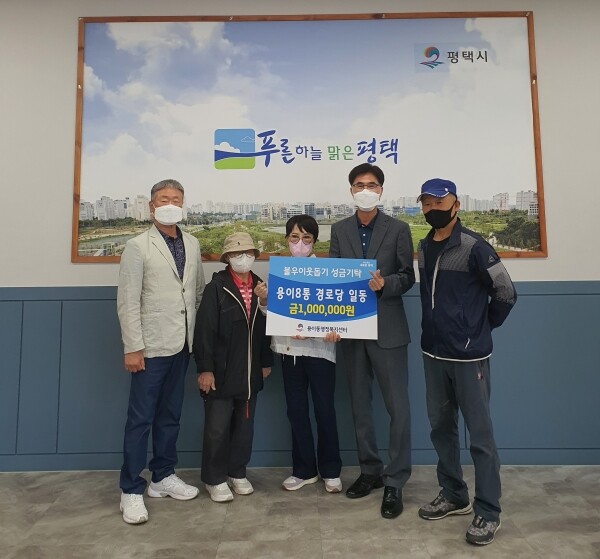 성금은 용이8통 경로당에 다니시는 어르신들이 십시일반 정성을 모아 마련한 것으로 기탁된 후원금은 경기사회복지공동모금회의 용이동 지역사회보장협의체 기금으로 모아져 관내 어려운 이웃을 위한 각종 복지사업에 투명하게 쓰일 예정이다.