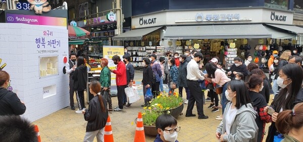 참가자들이 행복자판기 앞에서 가장 행복했던 기억을 회상하며 그 추억을 시민들과 공유하는 이벤트이다.