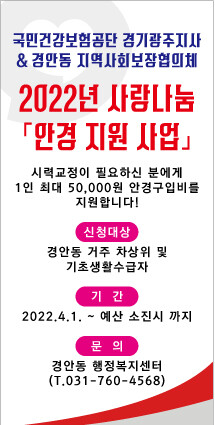 표동진·이선열 공동위원장은 “지역 내 어려운 이웃들이 더 밝고 따뜻한 눈으로 세상을 바라볼 수 있도록 도움을 주신 국민건강보험공단 경기광주지사와 오렌지안경점 대표께 감사드린다”며 “어려운 가정형편으로 안경 착용 시기를 놓쳤거나 맞지 않는 안경 착용으로 불편함을 느꼈을 대상자들이 이번 사업을 통해 밝은 세상을 나누는 좋은 계기가 되길 기대해 본다”고 말했다.