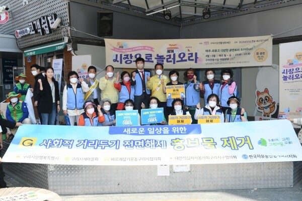 봉사자들은 구리전통시장 일원에서 다중이용시설, 공공시설을 대상으로 점포에 부착된 사회적 거리두기 홍보물을 제거하고 피켓을 통해 시민에게 개인 방역 수칙을 실천할 것을 홍보했다.