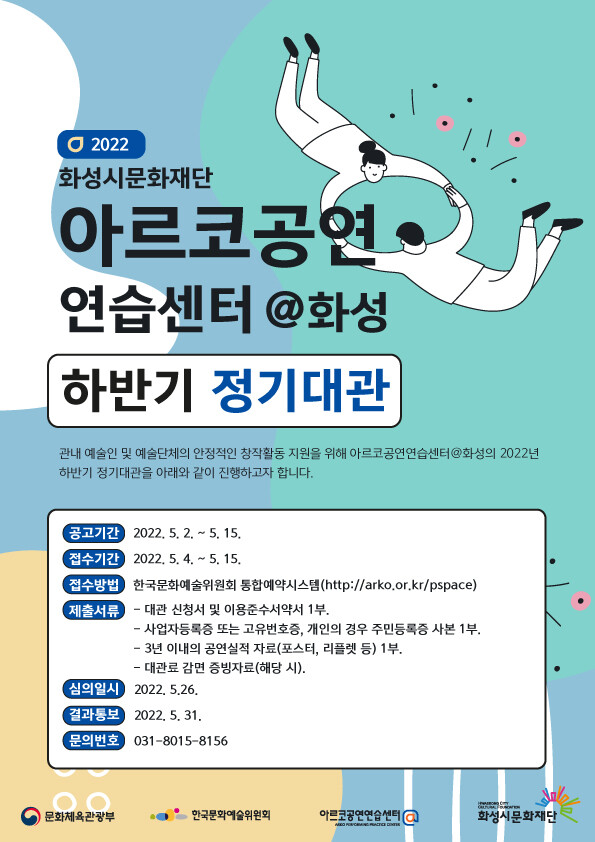 정기대관 기관은 7월부터 12월까지 총 6개월이며 대관 신청방법 및 유의사항은 화성시문화재단 홈페이지에서 더욱 자세히 볼 수 있다.