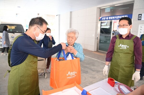 하남 석바대시장은 신장1동행정복지센터를 통해 신장동 거주 독거노인, 취약계층 어르신들의 명단을 전달받아 상인회 임원들이 직접 선물세트를 만들어 전달했다.