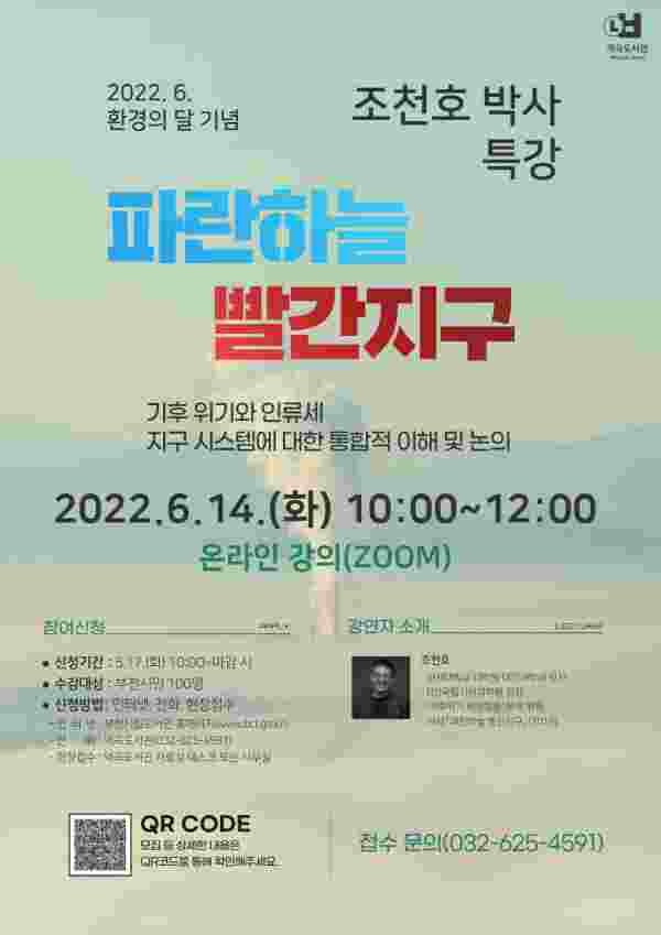 이번 강의는 부천시민 100명을 대상으로 운영하며 참여신청은 5월 17일 10시부터 부천시립도서관 홈페이지, 전화, 현장접수의 방법으로 신청할 수 있다.