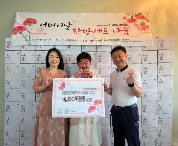 전달식에는 안성경옥당한의원 이원욱 원장을 비롯해 사회복지법인 한길복지재단 임학록 사무국장, 안성시서부무한돌봄네트워크팀 유성아 센터장 등이 참석했다.