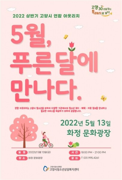 오후 6시부터 화정역 문화광장 일대에서 진행되는 연합 아웃리치는 지역의 9개의 유관기관, 고양시여자중장기청소년쉼터, 고양시비정규직노동자지원센터, 고양시중독관리통합지원센터, 학교밖청소년지원센터)과 고양시청소년상담복지센터에서 운영하는 이동상담버스, 대학생 청소년노동인권서포터즈단이 참여한다.