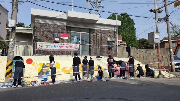 이번 활동은 관내 중산고 미술부 ‘청개구리반’ 학생들의 자발적인 재능기부에 중산2동 협의체위원 및 행복파랑새단 등 지역주민들이 함께 힘을 보태면서 그 의미를 더했다.
