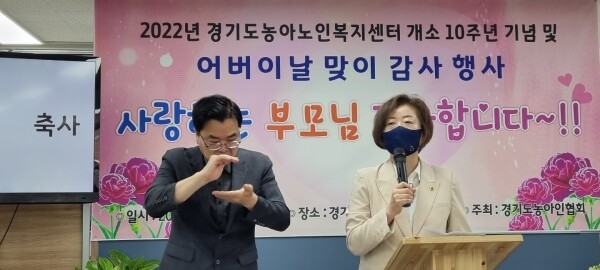 문경희 부의장은 축사를 통해 “농아노인복지센터 개소 10주년을 진심으로 축하드리며 어버이날 감사와 사랑을 전하는 소중한 자리에 함께해서 감사드린다”고 말했다.