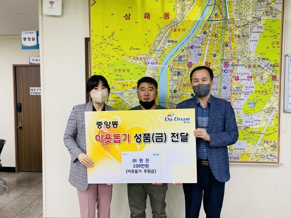 ㈜원진 최원진 대표는 “코로나19 장기화로 어려운 이웃에게 더 많은 관심이 필요한 시기이다 앞으로도 작은 나눔 활동을 통해 지역사회 발전에 기여하고 도움이 필요한 분들에게 희망을 전달할 수 있도록 노력하겠다”고 말했다.