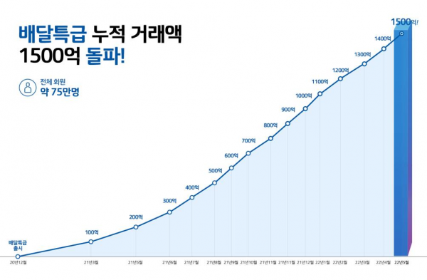 공공배달앱 배달특급은 현재 도내 31개 시군에서 서비스되고 있으며 지난 1일 누적 거래액 1,500억원을 돌파했다.