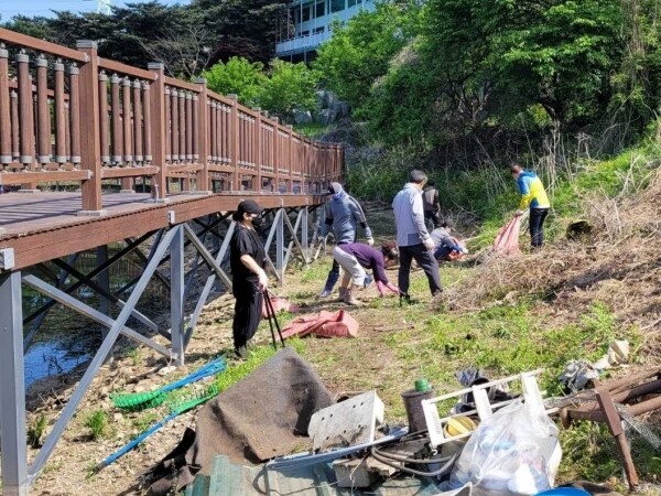 이날 기산리장을 비롯해 기산리 주민 50여명은 코로나19 방역 수칙을 철저히 지키며 산책로 주변으로 자라난 잡풀들을 제거하고 무단투기 쓰레기 약 500kg를 수거했다.