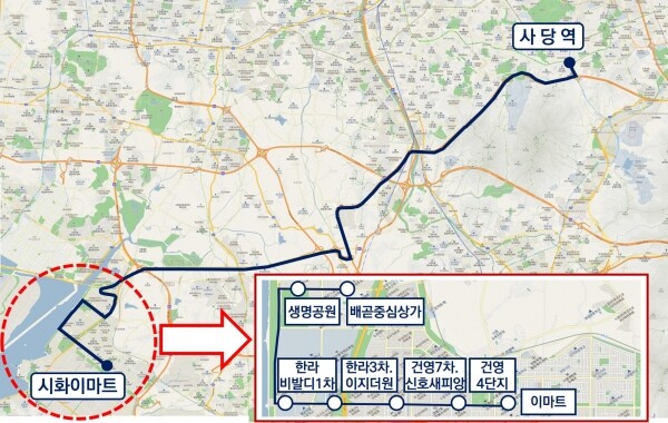 이마트 시화점을 출발해 정왕동과 배곧신도시를 지나 정왕IC를 거쳐 강남순환로를 통해 사당역에 도착하는 노선으로 이마트 시화점에서 사당역까지 평일 기준 35회 운행한다.