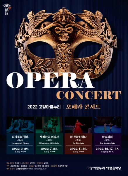 5월 ‘피가로의 결혼’을 시작으로 7월에는 로시니의 ‘세비야의 이발사’, 11월에는 베르디의 ‘라 트라비아타’, 12월 크리스마스를 앞두고는 모차르트의 ‘마술피리’가 차례로 무대에 오르며 2년에 걸친 아람누리 오페라 콘서트 시리즈 대단원의 막을 내린다.