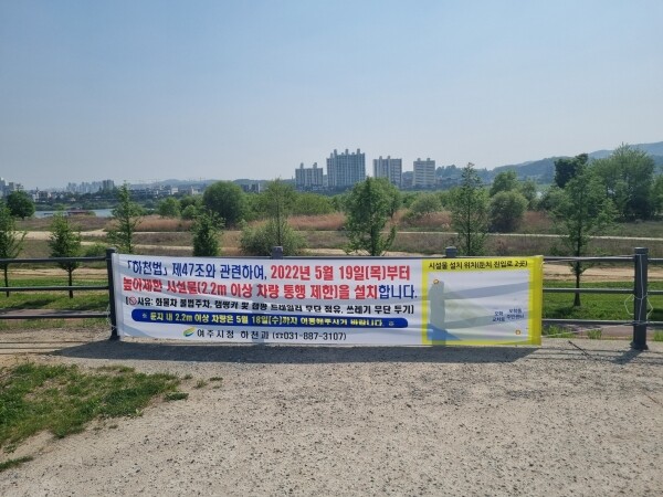 여주시 남한강 둔치 입구 2곳에 설치되는 시설은 2.2m이상으로 높이를 제한하며 이 경우 버스, 화물차, 건설기계, 캠핑카 등 높이 2.2m 이상 차량은 둔치 진입이 제한된다.
