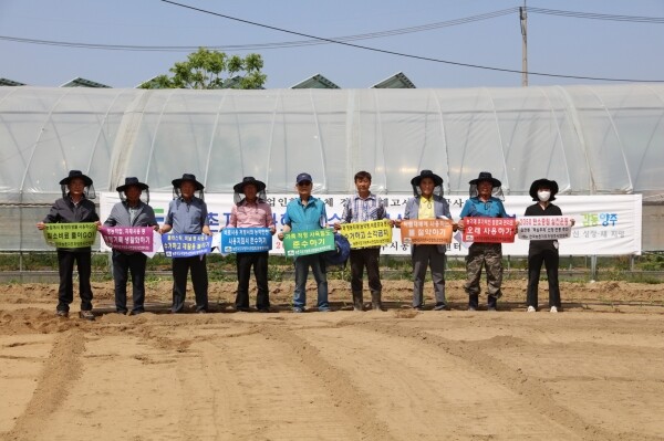 연시회에 앞서 농촌지도자회 농업·농촌분야 탄소중립 실천을 위한 탄소중립 실천운동 ‘GO-GO-GO 실천지침’ 중 읍면동별 핵심주제를 선정해 ‘행운과 희망’의 상징인 무지개색의 부직포 현수막을 제작해 결의를 다지는 시간을 가졌다.