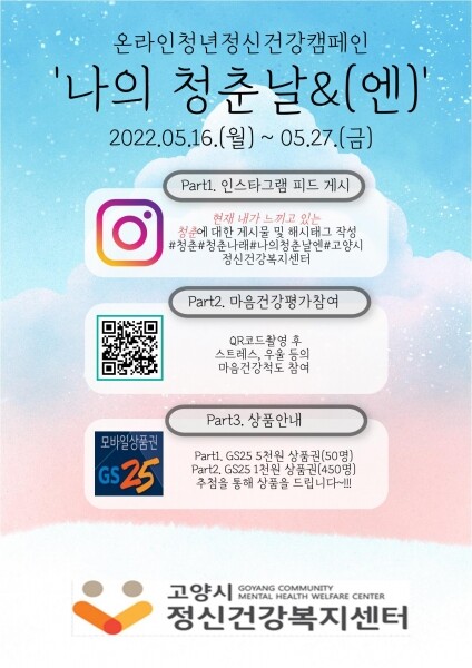 한편 고양시정신건강복지센터는 19세 이상 34세 이하 고양시 청년을 대상으로 찾아가는 정신건강상담을 포함해 관내 대학생, 사회복무요원, 취업 준비생 등을 만나 정신건강의 중요성을 알리는 인식개선활동과 상담 등을 무료로 제공하고 있다.