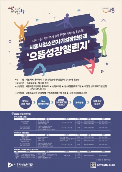 특히 ‘으뜸성장챌린지’의 전 과정을 이수한 청소년을 대상으로는 시흥시인재양성재단과 협력한 장학생선발심사를 통해 가칭‘으뜸성장장학금’도 지급할 계획이라고 전했다.