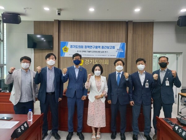 이날 중간보고회에서는 의원연구단체 권정선 회원, 배수문 회원, 국중범 회원과 연구용역 책임자인 김서용 연구원 및 경기도교육청 인사 및 조직 담당부서 관계자 등이 참석했다.