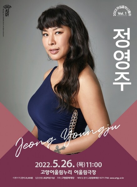 올해도 최고의 감동을 전해줄 2022 아침음악나들이의 첫 번째 공연은 드라마와 영화, 뮤지컬 무대를 종횡무진 오가며 활발하게 활동하고 있는 뮤지컬 배우 정영주의 무대로 오는 5월 26일 고양어울림누리 어울림극장에서 개최된다.