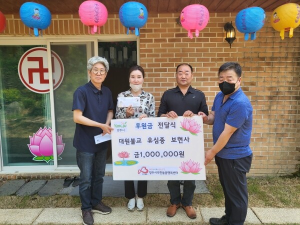 보현사 만공주지스님은 ‘보현사를 방문해줘서 감사하다 양주시무한돌봄행복센터에서 복지사각지대에 놓여있는 저소득·위기가정 대상자들을 돕고 있다는 얘기를 듣고 감명을 받아 보현사에서도 저소득·위기가정 가구에 힘이 되고 싶어 후원을 하게 됐다 후원금을 통해 저소득·위기가정 대상자들이 다시 한번 희망을 가질 수 있는 기회가 됐으면 좋겠다’고 밝혔다.