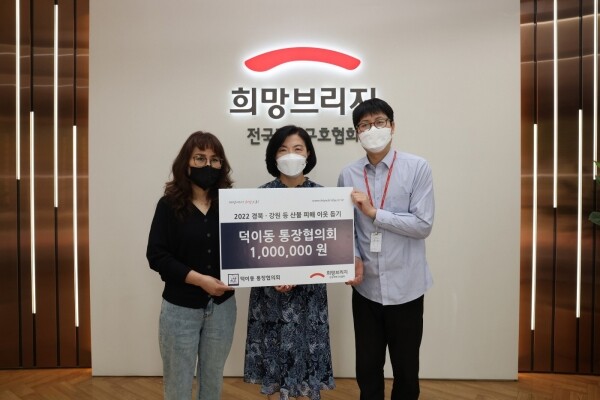 김한원 통장협의회장은 “산불로 피해를 입으신 많은 분께 위로의 말씀을 드리며 하루 빨리 일상생활로 돌아가는 데 도움이 되기를 바란다”고 밝혔다.