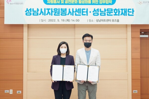 이를 위해 시 산하 기관인 성남시자원봉사센터와 성남문화재단이 5월 19일 아트센터 뮤즈홀에서 자원봉사자 공연 할인에 관한 업무협약을 했다.