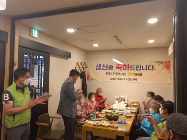‘홀몸 어르신 생신상 차려드리기’행사는 민관협력 지원사업으로 관내 요식업체인 ‘궁리토종닭백숙’에서 생신상을, 고덕면행정복지센터와 지역사회보장협의체에서 케잌과 생신선물 등을 제공하는 지역사회 구성원들이 함께 만들어 가고 있다.