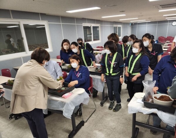 이번 행사는 새일센터에서 호법면에 위치한 ㈜명진로직스를 직접 방문해 재직중인 여성 직원들을 대상으로 이루어졌고. 코로나19로 몸과 마음이 힘든 가운데 일과 가정을 모두 지키기 위해 애써온 직원들은 흙과 식물을 만지며 지친 마음을 달랠 수 있었고 원예체험과 더불어 서로 소통하며 스트레스를 해소하고 위로하는 시간을 가졌다.