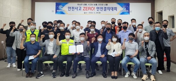 24일 수원도시공사 자원순환센터는 관내 13개 수거업체 대표와 20개 재활용 처리업체 대표 등 50여명이 참석한 가운데 ‘2022년, 안전사고 ZERO 사업장 조성’을 위한 ‘결의대회’를 열고 무사고 사업장 조성을 위해 총력을 다 하기로 다짐했다.