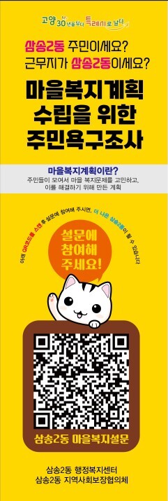 삼송2동에 거주하는 시민 혹은 근무지가 삼송2동인 시민은 누구나 참여 가능하며 참여방법은 휴대폰으로 설문QR코드를 스캔 후 출력되는 화면 내용에 응답하면 된다.