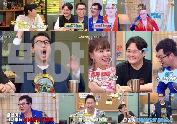 립싱크 코미디의 전설 ‘허리케인 블루’ 김진수, 이윤석과 함께 인천의 악동 ‘클놈’ 지상렬이 애증의 멤버 염경환 판넬을 들고 등장한 모습이 예고 돼 폭소를 유발한다.