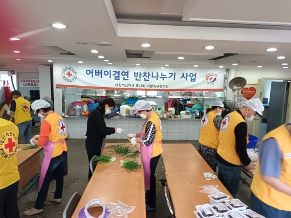 이날 의왕시 대한적십자사 봉사회 회원 30여명은 복지사각지대에 놓인 취약계층 88가정을 방문해 회원들이 직접 조리한 정성스러운 밑반찬 4종과 김치, 제육볶음 등을 전달했다.