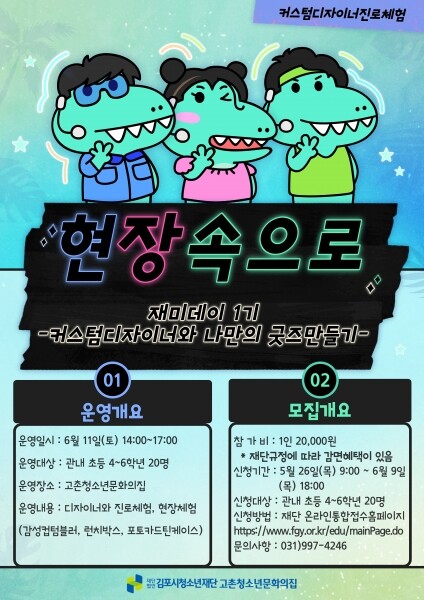 ‘현장속으로 재미데이 1기’ 프로그램은 관내 초등학교 4~6학년 청소년을 대상으로 커스텀 디자이너 관련 진로직업에 대한 기본이해와 더불어 진출분야 및 활동 영역과 나만의 굿즈 만들기 체험 감성 컵텀블러, 런치박스, 포토카드 틴케이스 만들기 등 이론 및 체험 활동을 진행한다.