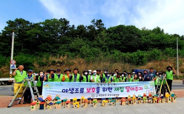 자연보호 포천시협의회에서는 한국조류협회 포천시지회의 자문을 받아 조류의 특성을 반영한 다양한 모양의 새집 약 40여 개를 준비했으며 회원들과 함께 왕방산과 주금산 일대 나무에 새집을 매달아 보금자리를 마련했다.