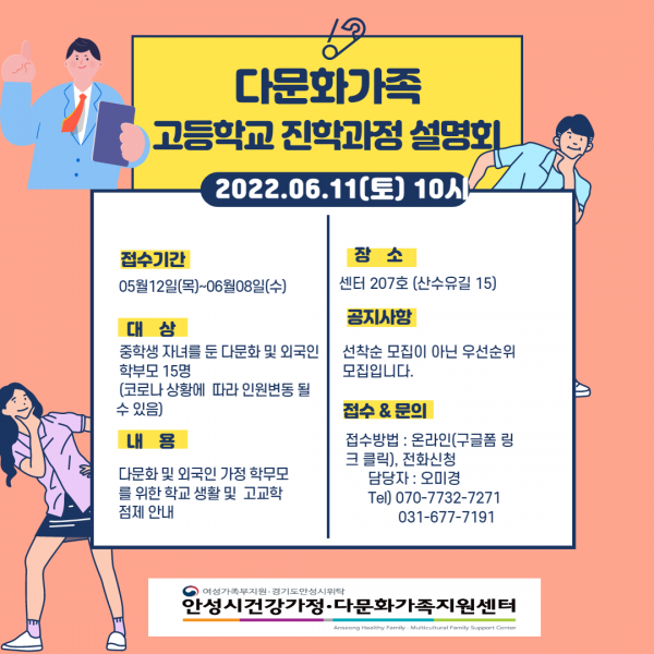 신청을 원하는 자는 안성시 건강가정다문화가족지원센터에 전화 및 온라인으로 신청하면 된다.