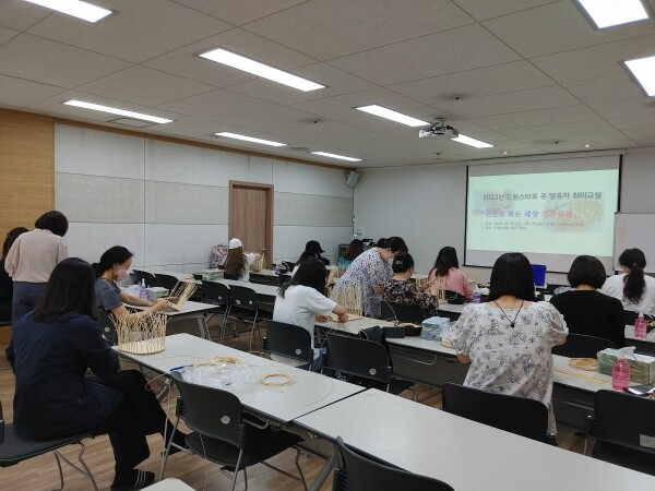 드림스타트 주양육자 11명을 대상으로 실시한 라탄공예 프로그램은 라탄이라는 소재를 하나씩 엮어가는 과정에 집중하며 작품을 완성해 가는 것이다.