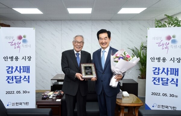 한국기원 총재실에서 열린 이날 감사패 전달은 한국기원 임채정 총재, 양재호 사무총장, 최영호 의정부시바둑협회장 등이 참석했으며 임채정 한국기원 총재가 한국 바둑 발전 기여에 대한 감사의 마음을 담아 감사패를 안병용 의정부시장에게 전달했다.