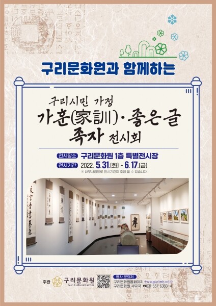 안영기 구리문화원장은 “핵가족화하는 현실이지만, 아름답고 주옥같은 각 가정의 가훈과 좋은 글을 통해 자녀에게 물려줄 올바른 가치관을 세워 행복한 가정, 행복한 사회를 만들어 가자”고 전했다.