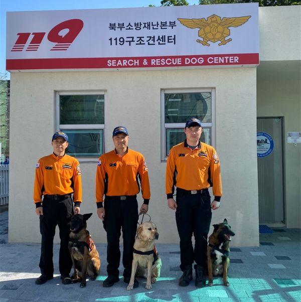 이번에 입상한 주인공들은 현재 북부소방재난본부 북부특수대응단에 배치돼 임무 수행 중인 119구조견 아롱, 전진, 태공과 핸들러 소방장 오문경, 소방장 장택용, 소방교 김기상 대원이다.