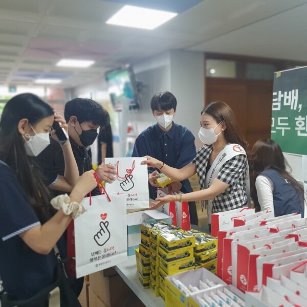 또한 학교 중앙현관에서 흡연예방 교육자료와 관련 모형 등을 전시하고 등교 및 출근하는 학생과 교직원을 대상으로 교육자료와 홍보물품을 전달했다.