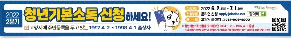 청년기본소득은 신청일 기준 고양시에 주민등록을 두고 경기도에 최근 3년 이상 계속 또는 합산 10년 이상 거주한 만 24세 청년에게 분기별 25만원을 카드형 고양시 지역화폐로 지급하는 청년복지 정책이다.
