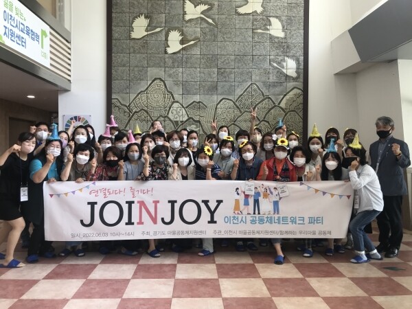 공동체 네트워크파티는 ‘JOINJOY’-연결되다 즐기다’라는 뜻으로 지속가능한 공동체 활성화를 모색하기 위해 마련되었는데, 경기도 공동체지원센터 센터장 및 이천시 교육청소년과장의 응원인사 파티 아이템을 통한 마을공동체 팀 구성 질문을 통해 공동체 알아가기 팀별 공동체 활성화방안 논의 및 발표 힐링 체험을 통한 공동체 나눔 앞으로의 계획과 다짐의 순서로 진행됐다.