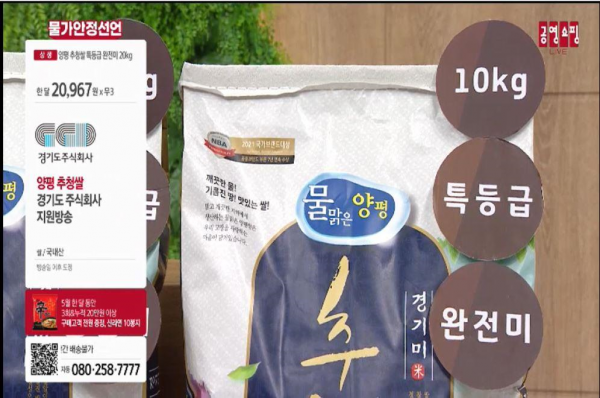 경기도주식회사는 지난 5월 31일 공영홈쇼핑을 통해 ‘물맑은양평 추정쌀’을 판매해 약 1억 550만원의 거래액을 기록했다고 7일 밝혔다.