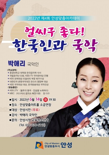 이번 강연에서는 국악 대중화에 앞장서고 있는 박애리 씨가 재미와 감동이 담긴 판소리 스토리를 들려주며 국악인의 삶과 국악, 꿈을 포기하지 않는 열정에 관한 이야기를 전달할 예정이다.