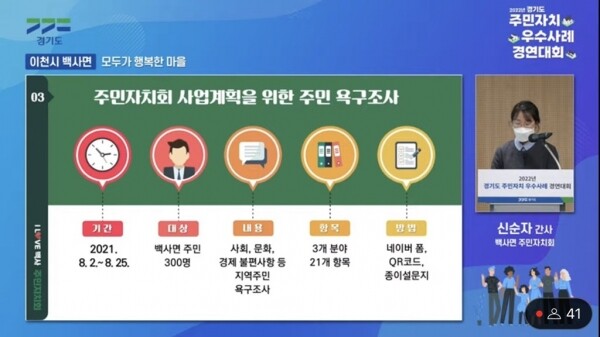 경기도 주민자치 우수사례 경연대회는 각 시군에서 추진된 주민자치 우수사업을 발표하고 공유하기 위해 매년 개최하는 행사로 2009년 처음 열린 이래 올해로 14회를 맞았다.