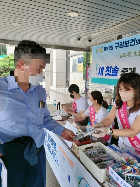 또한 김포시청에서도 헌 칫솔을 가지고 오면 새 칫솔로 교환해 주는 행사를 했으며 충치예방과 시린이 완화에 도움이 되는 불소양치용액도 배부했다.