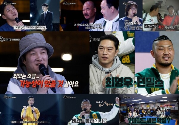 곧바로 당구장으로 이동한 멤버들은 서로 뒷자리를 사수하려 들어 데프콘이 “이런 조연병 버리세요 이제는 주연이다”를 외치게 만들기도. 치열한 경쟁률을 뚫고 ‘고음 실력자’ 최영우와 ‘모두의 원픽’이었던 던밀스가 최종 합격했다.