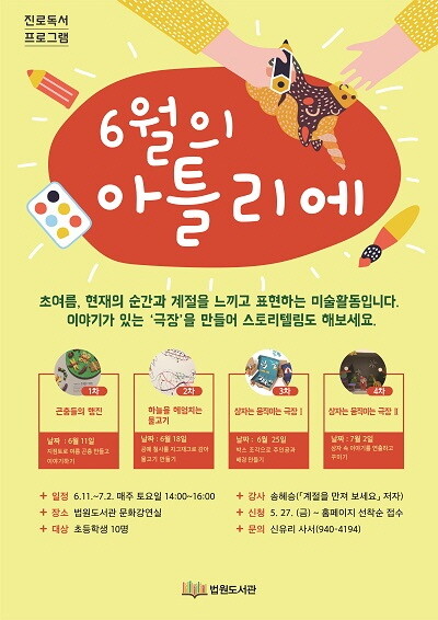 ‘6월의 아틀리에’는 매주 토요일 모집된 초등학생 10명을 대상으로 진행되며 예술 분야 직업의 흥미와 적성 탐색의 기회를 제공하고자 기획됐다.