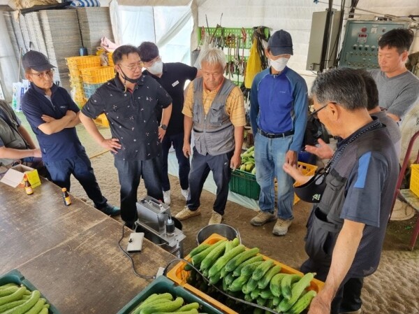 이번 교육은 2022년도 ‘킬레이트제 용해장치 및 활용기술 시범사업’과 ‘안전농산물 생산 토양개선 기술 시범사업’을 추진 중인 고삼, 미양 등 시설채소작목반 농업인을 대상으로 진행됐으며 토양 양분상태 진단과 킬레이트 용해장치 사용법 및 작물별 처리방법 등을 전달했다.
