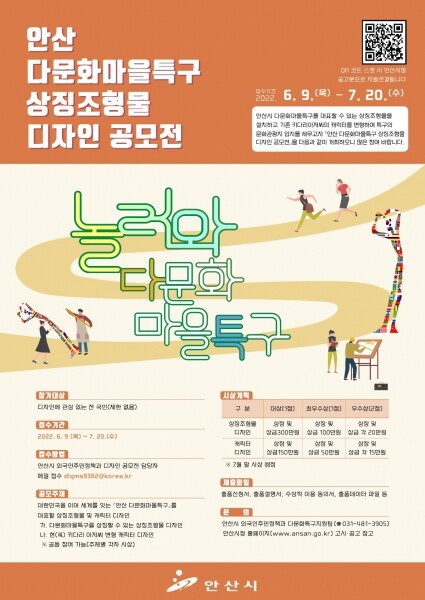 이번 공모전은 시가 지난 3월 행정안전부가 주최한 ‘2022년 외국인 거주지역 기초인프라 조성 공모사업’ 선정에 따라 지역주민과 외국인 주민 간 소통과 교류공간을 확충하기 위해 마련됐다.