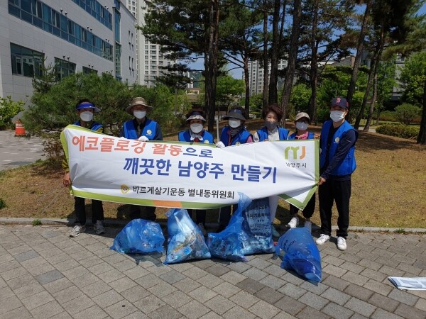 이날 바르게살기운동 남양주시협의회 별내동위원회 회원 10여명은 별내행정복지센터 인근 마을 안길을 돌아다니며 쌓여 있는 쓰레기 200리터를 주웠다.
